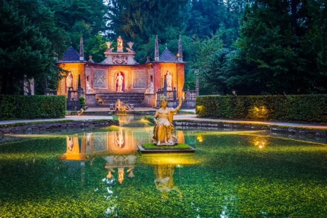 離薩爾斯堡舊城區約20分鐘車程的海爾布倫宮跟高地要塞是我最愛的薩爾斯堡景點、采邑主教Markus Sittikus von Hohenems夏天白日遊憩宴客的地方,亮點是它的惡作劇噴泉(Trick fountains)。