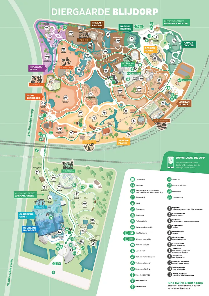 鹿特丹動物園(Diergaarde Blijdorp),正如其名,這座動物園位於荷蘭鹿特丹市的西北部,是荷蘭最古老的動物園之一。動物園於1857年首次開放,最初是位於鐵路旁的一個花園中,後來發展成為歐洲最美麗的動物園之一。鹿特丹動物園以其豐富的動物種類和獨特的建築設計而聞名,園內擁有21座獨特的歷史建築,除了是動物園之外,也被視為鹿特丹建築文化遺產的重要守護者。