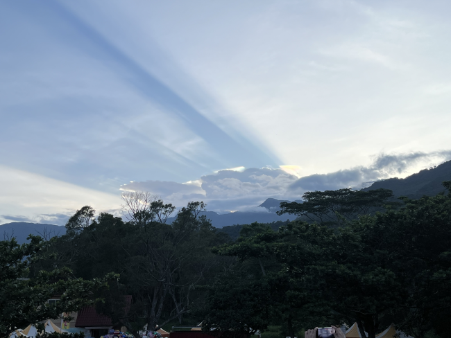 臺東鹿野高台上太陽被雲層遮住的光 彷彿像日落 山上的空氣新鮮也有草地可以野餐玩耍