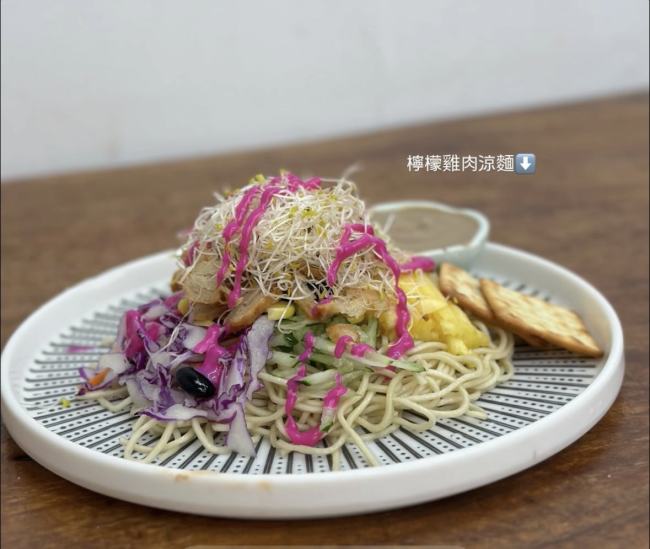 上面淋的火龍果做的水果沙拉吃起來酸酸甜甜的
