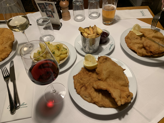 奧地利美食:Schnitzel 相當扁的炸豬排卻不失口感,搭配檸檬更是清爽十足。