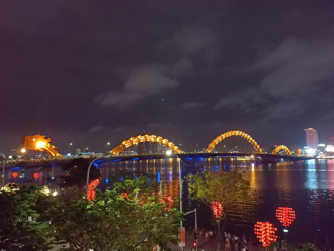 色彩不斷變幻,宛如龍身在夜中舞動,讓峴港的夜晚璀璨奪目。
