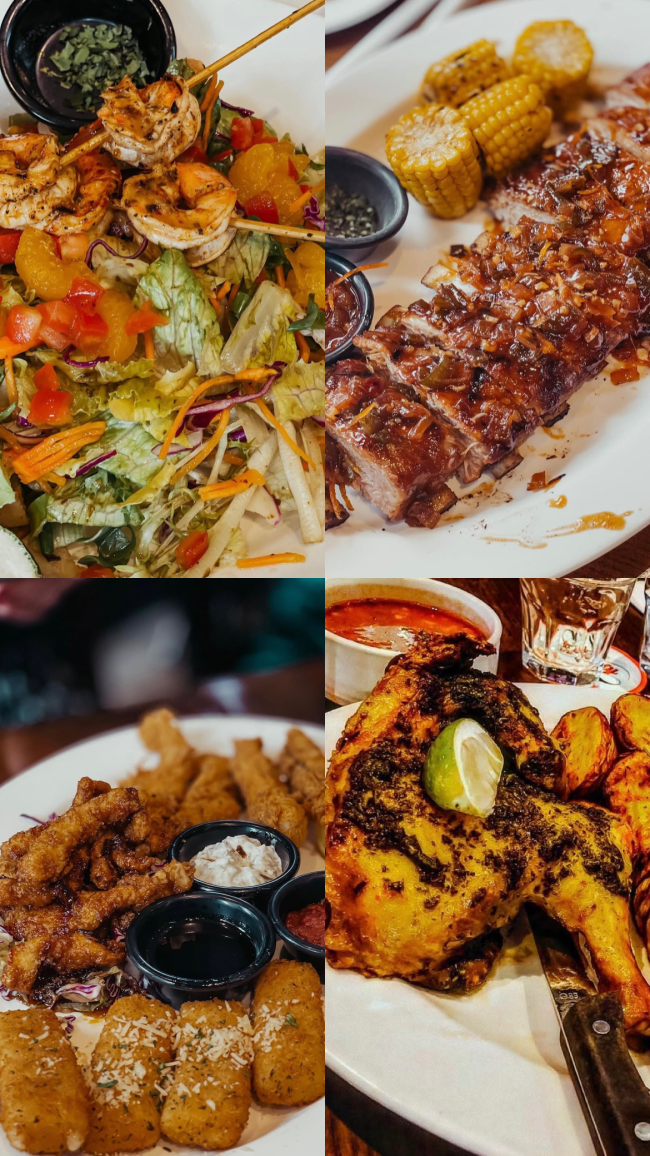 裡面有著囊括南美美醬好半雞、紐奧良豬排、檸檬鮭魚串 搭配烘烤過的小洋芋及紐奧良烤玉米
