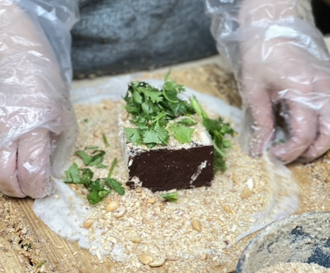 南機場夜市-捲捲村 這家最有名的提拉米蘇花生捲,有微微的酒味