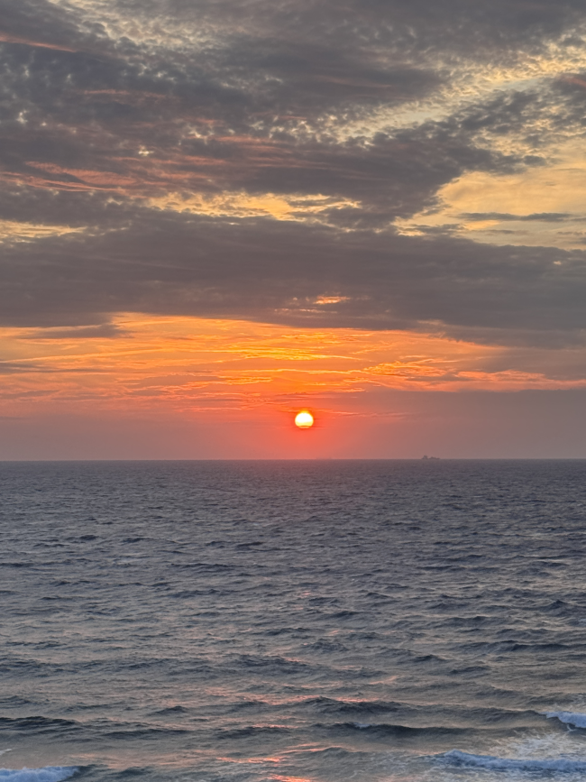 橘紅色的光把海面染成一層金紗,海風輕輕吹過來,連心情都慢了下來。
