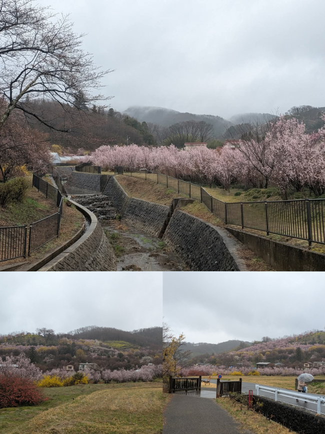 花見山公園及其周邊的美麗景觀,在福島市渡利地區專事生產花木的農家村落悉心照護下,交織成色彩繽紛的花樹田野、美麗的小河、村落的原始風景。 一到春天,梅花、桃花、櫻花、連翹、貼梗海棠、紫玉蘭等約70種花卉相繼綻放,與周邊的花農田地將整座山都染成了一片淡粉色,非常壯觀。 天氣晴朗時,可以遠眺吾妻連峰和安達太良連邦群山山景。吾妻小富士上的積雪開始融化的時候,山上還可以看到有如兔子形狀般的殘雪,能欣賞到「吾妻山雪兔」的特殊景象。