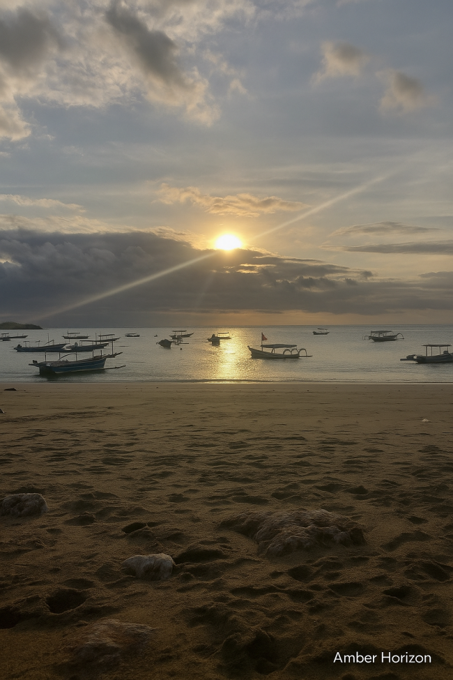 地點:Kuta, Bali 在庫塔海邊欣賞日落,是我心中最佳的追光地點。夕陽緩緩沉入海平線,金色光影灑在海面與小船之間,讓人忘卻時間,只留下心的寧靜與感動。