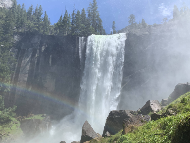 在優勝美地,走了好長一段山路,滿身疲憊卻在眼前看到奔騰而下的瀑布,水霧中還浮現一道彩虹。那瞬間彷彿洗去所有疲勞與煩惱,大自然的力量讓心靈被徹底療癒,覺得一切努力都值得。
