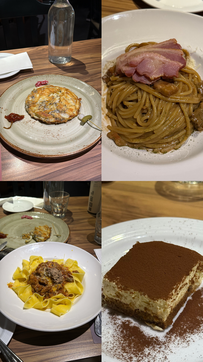 台北大安區的solo pasta,一間很好吃的義大利麵店,店內的裝潢也很有氛圍感,必點的一道義大利麵是巴薩醋燻鴨胸奶油義大利麵,麵條的軟硬度適中,帶著一點醋的味道,原本以為義大利麵配醋的味道會很奇怪,但意外的很美味。黑松露馬鈴薯起司煎餅也是必點之一,聽到名字時就覺得這道菜很高級,吃起來的味道如同名字一樣高級,並不會太油膩,起司也很牽絲。提拉米蘇愛好者的我,到了義式餐廳肯定也是要點的吧,他們家的提拉米蘇是酒味偏重的,品嚐起來不會過於甜膩,總之如果想要在氣氛好的地方慶祝,或者想要一家有儀式的餐廳,很推薦來這家義大利麵店。