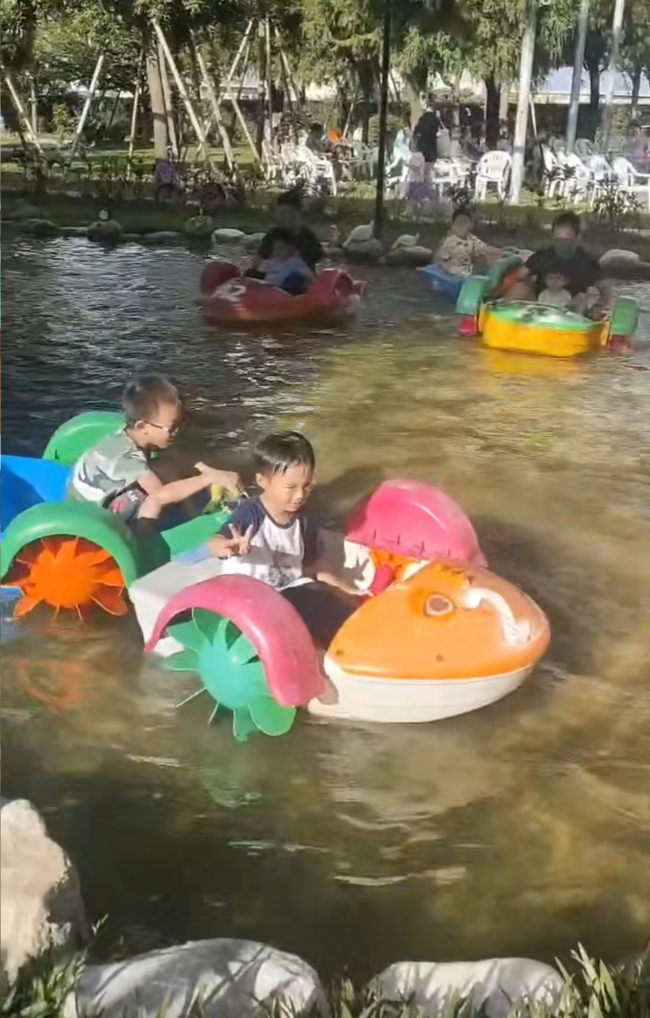 我帶著孩子來到彰化花壇的【長頸鹿休閒農場】,展開一場充滿笑聲的親子放電之旅。這裡綠意盎然、風景怡人,園區內不僅有許多可愛動物,還有滑船、沙坑、溜滑梯、小火車等多項設施,小朋友一整天都玩到不想回家。 最讓孩子興奮的就是「滑船」體驗!坐上色彩繽紛的小船,在人工湖上輕輕划動,孩子開心地大笑,玩得非常開心。