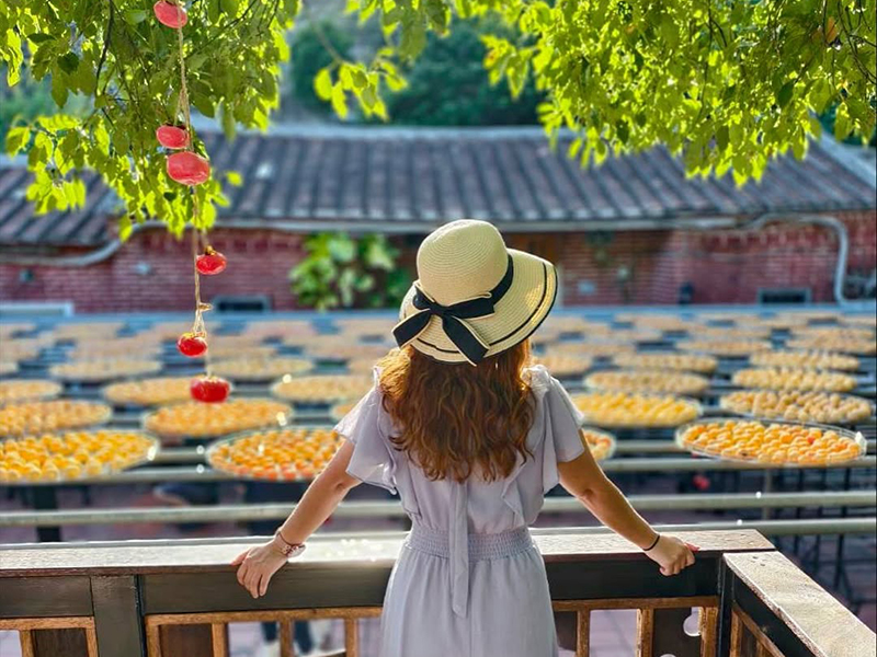 每年九月至隔年一月,只要新竹「九降風」一吹起,新埔地區的柿餅曬場就成了最動人的風景。金漢杮餅教育農園以傳統手法製作柿餅,在陽光照耀下,一盤盤橙黃柿餅鋪滿整個庭院,遠遠望去彷彿金色海洋。旅人們紛紛在此停下腳步,讓鏡頭記錄下這片秋日的溫柔光景。
